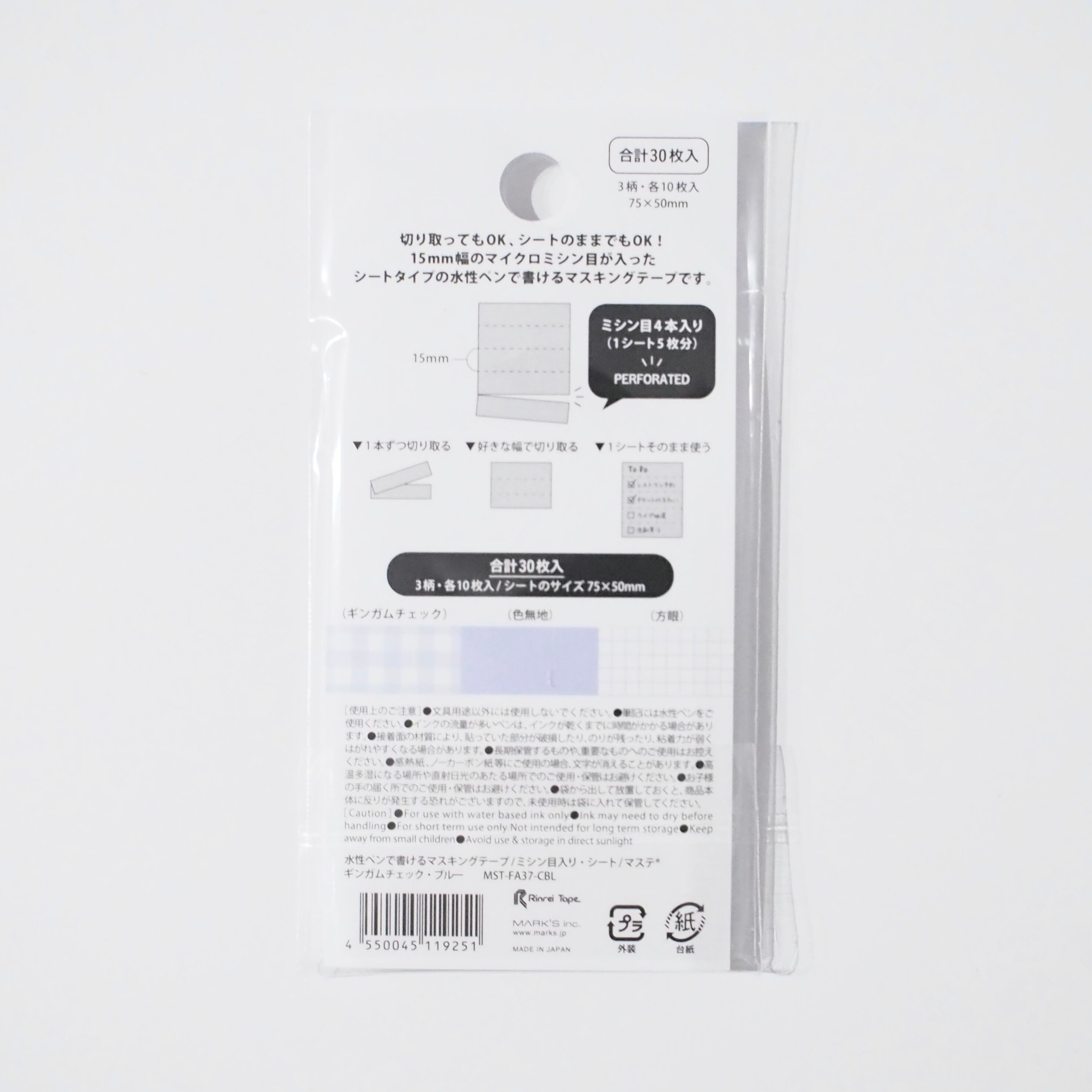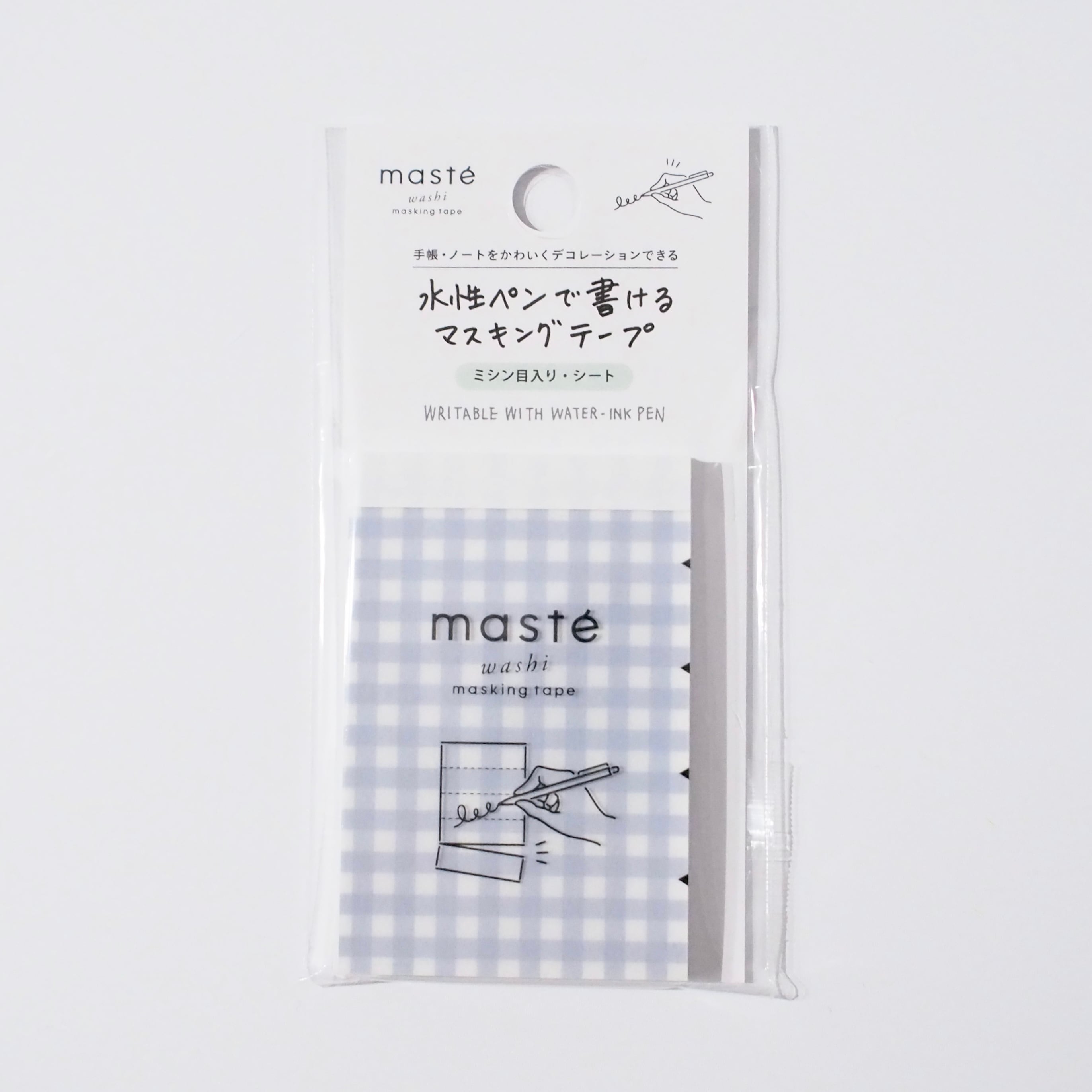 水性ペンで書けるマスキングテープ ミシン目入り・シート (ギンガムチェック・ブルー)