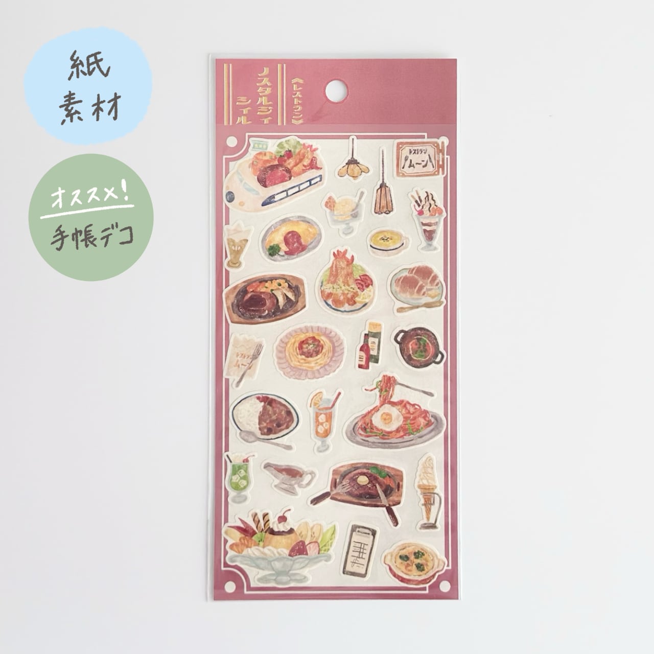 懐かしいモチーフや色合いが特徴の、レトロなシールです。