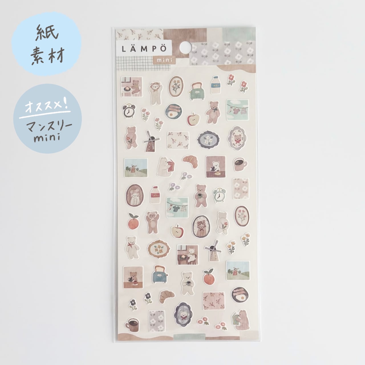 ランポステッカーミニ くまと朝