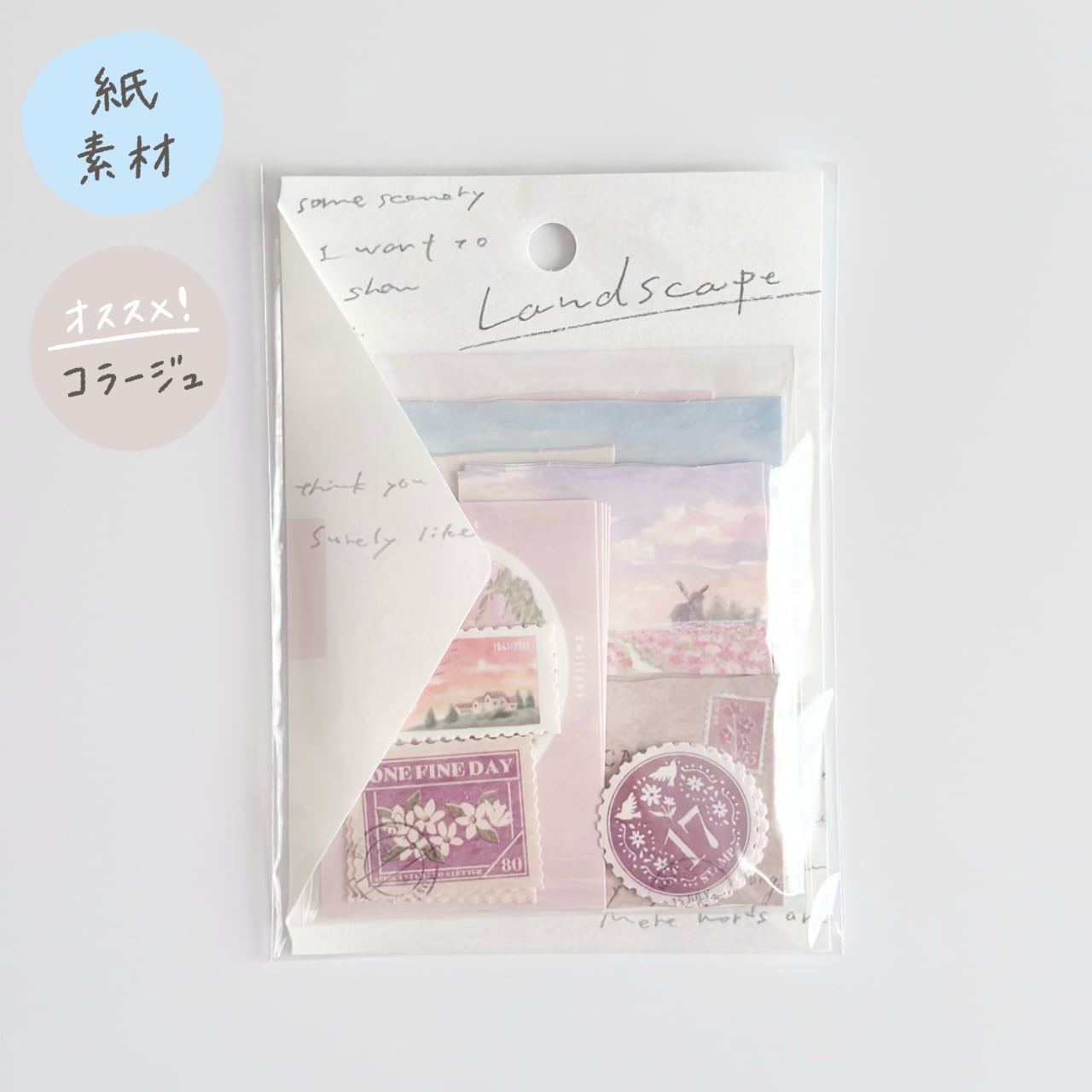 風景画というテーマに「手紙」のイメージがプラスされたフレークシール。
