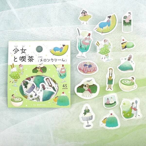 少女と喫茶スイーツが織りなすキュートなシール