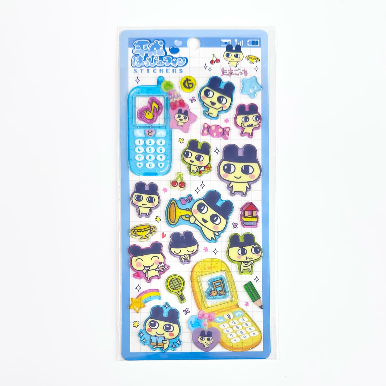 グミのような質感とラメがかわいい、なつかしくて新しいたまごっちの立体シールです。